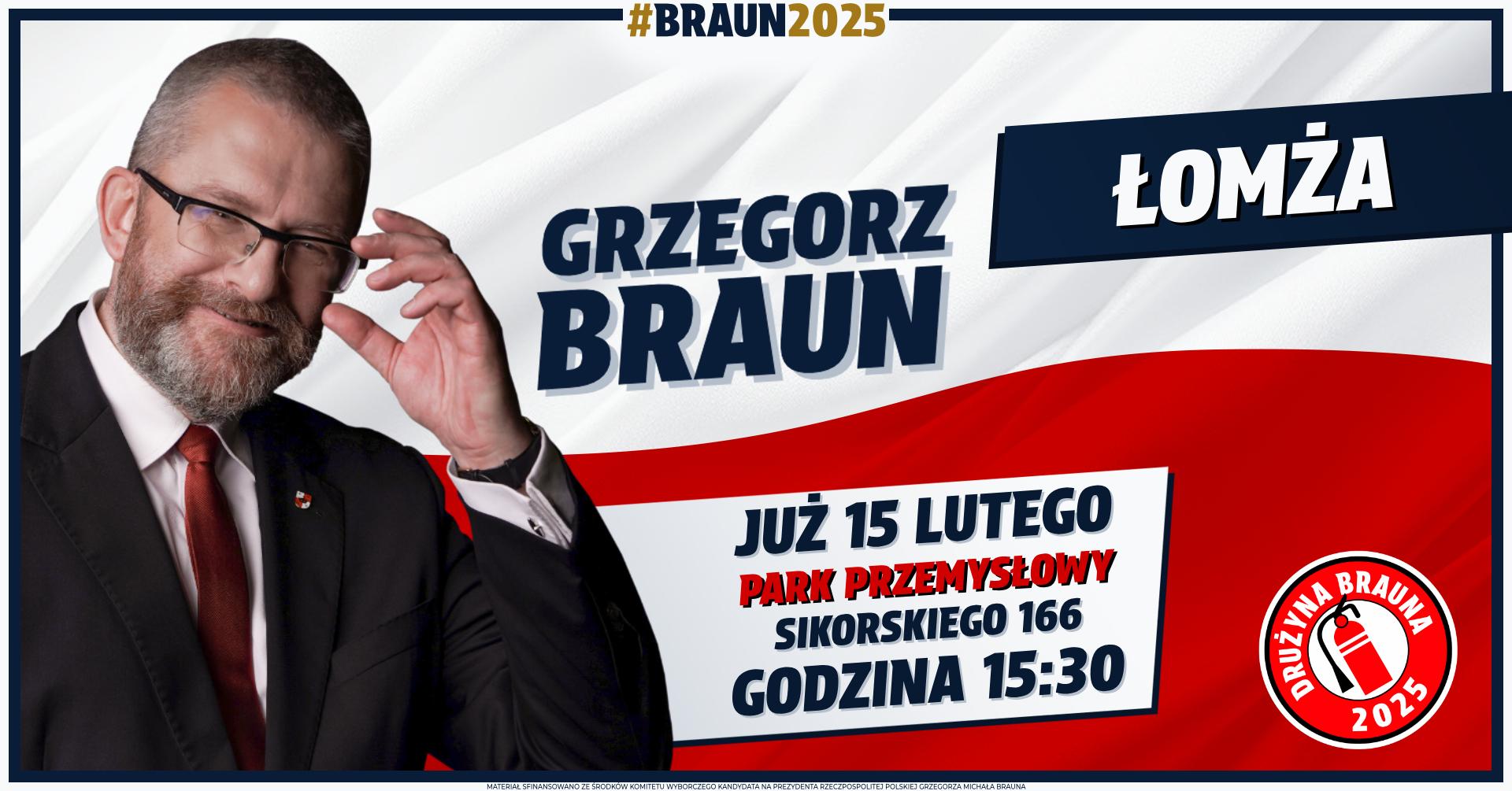 Już 15 lutego 2025 roku, o godzinie 15:30, w Parku Przemysłowym przy ulicy Sikorskiego 166 w Łomży odbędzie się spotkanie z mieszkańcami oraz konferencja prasowa Grzegorza Brauna. Zapraszamy!