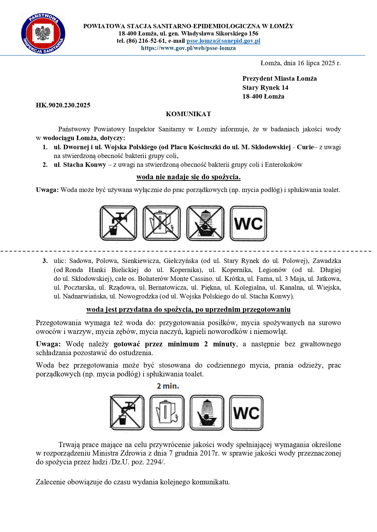 Kolejny komunikat zostanie wydany w czwartek, 17 lipca 2025 r., w godzinach wieczornych po zakończeniu kolejnego posiedzenia sztabu kryzysowego.