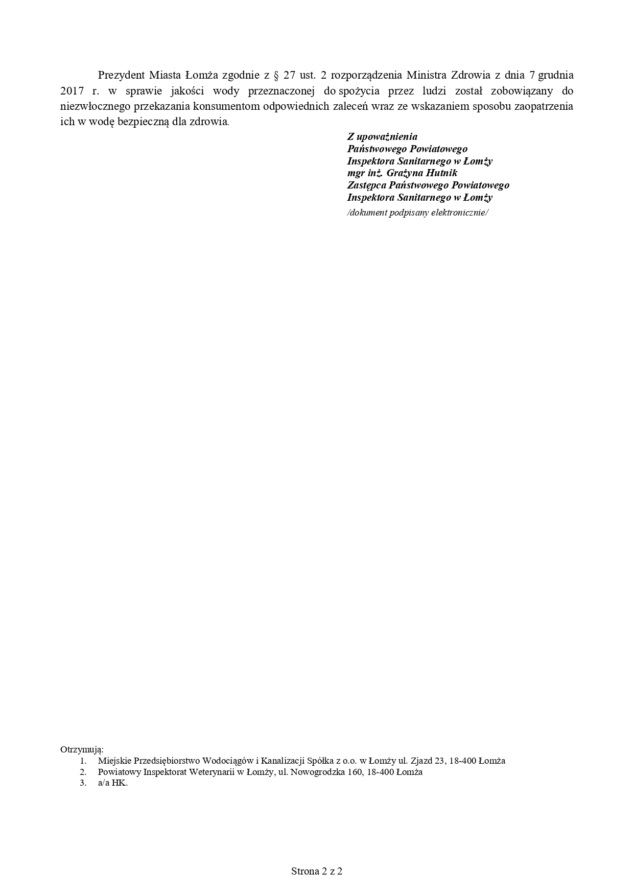 Woda zdatna do spożycia po przegotowaniu dostępna jest dla mieszkańców ulic: