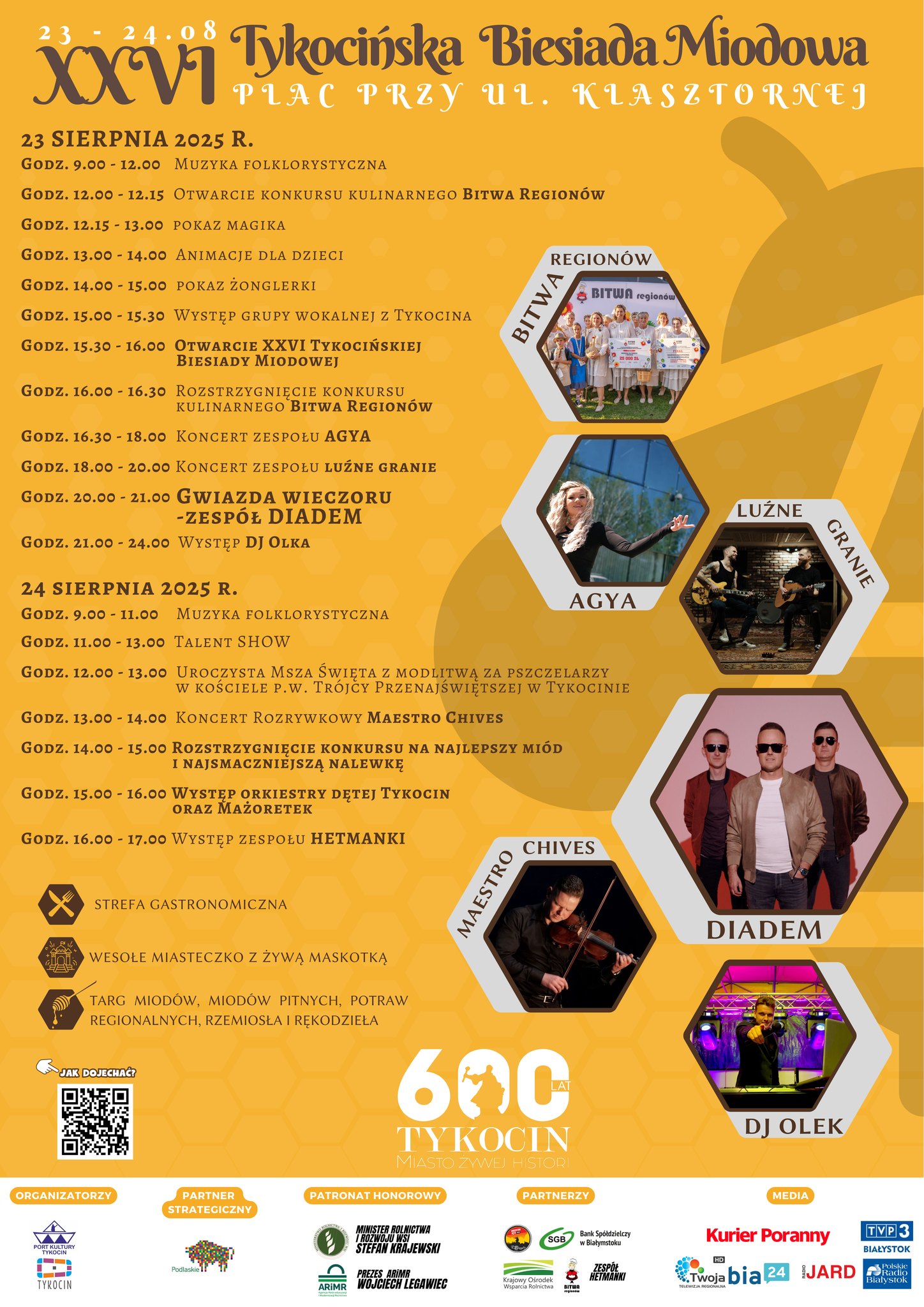 To wyjątkowa okazja, aby doświadczyć bogactwa lokalnej kultury, tradycji i gościnności. Przez dwa dni Tykocin rozbrzmiewać będzie muzyką, śmiechem i zapachem miodu.
