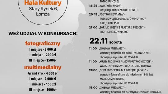 13:00 – „Dzika fotografia dla początkujących” – warsztaty fotograficzne dla młodzieży (14-18 lat), Mariusz Markowski, obowiązują zapisy tel. 86 2156887