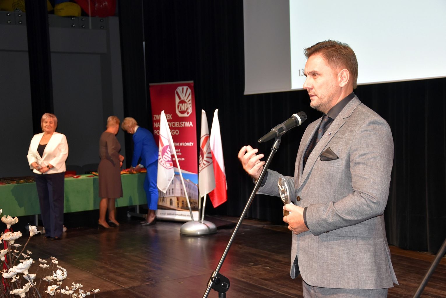 Uroczystość w Łomży miała podniosły charakter. Wzięli w niej udział nauczyciele – zarówno czynni zawodowo, jak i emeryci – działacze związkowi, przedstawiciele władz wojewódzkich i samorządowych, a także parlamentarzyści.