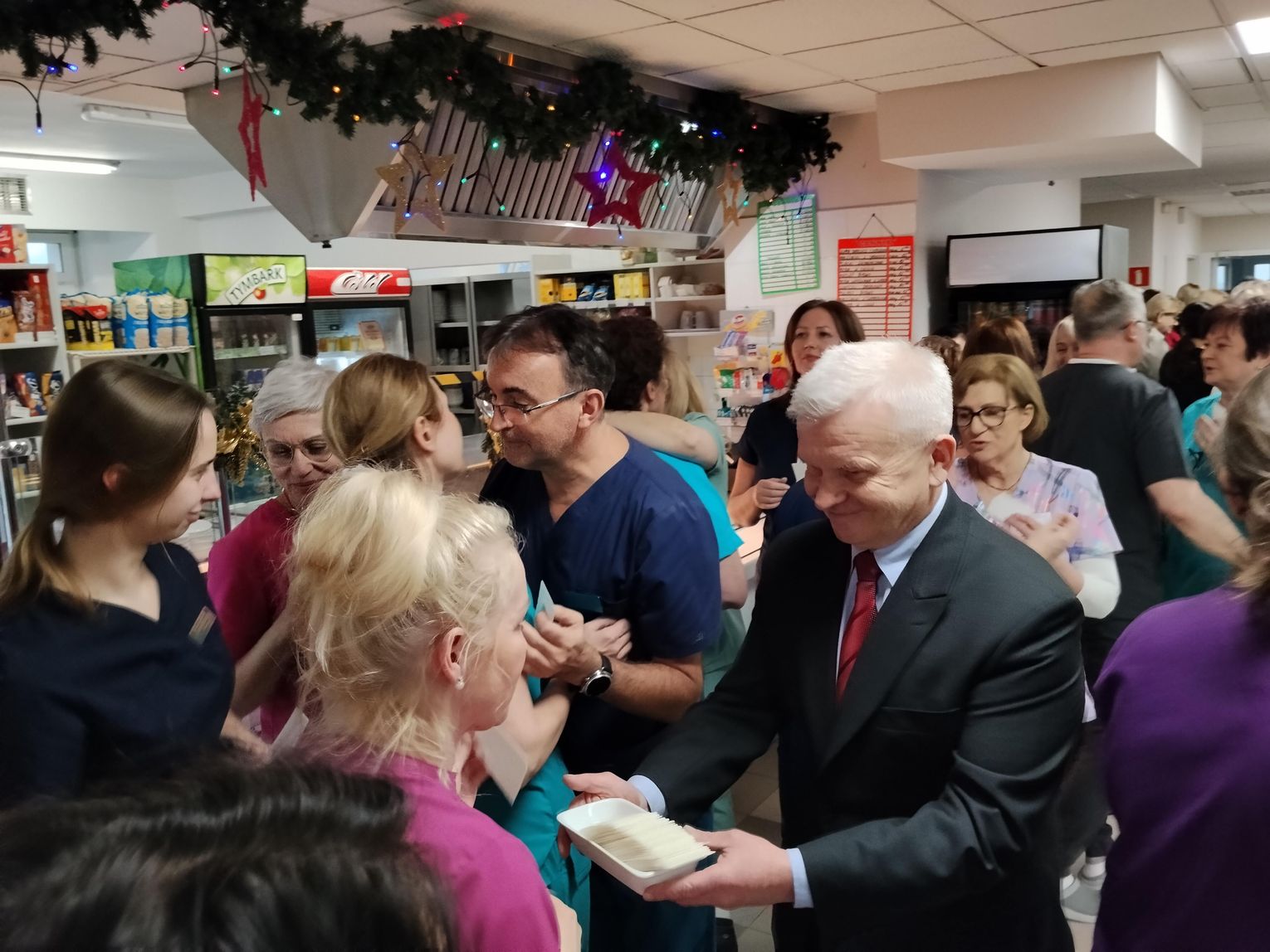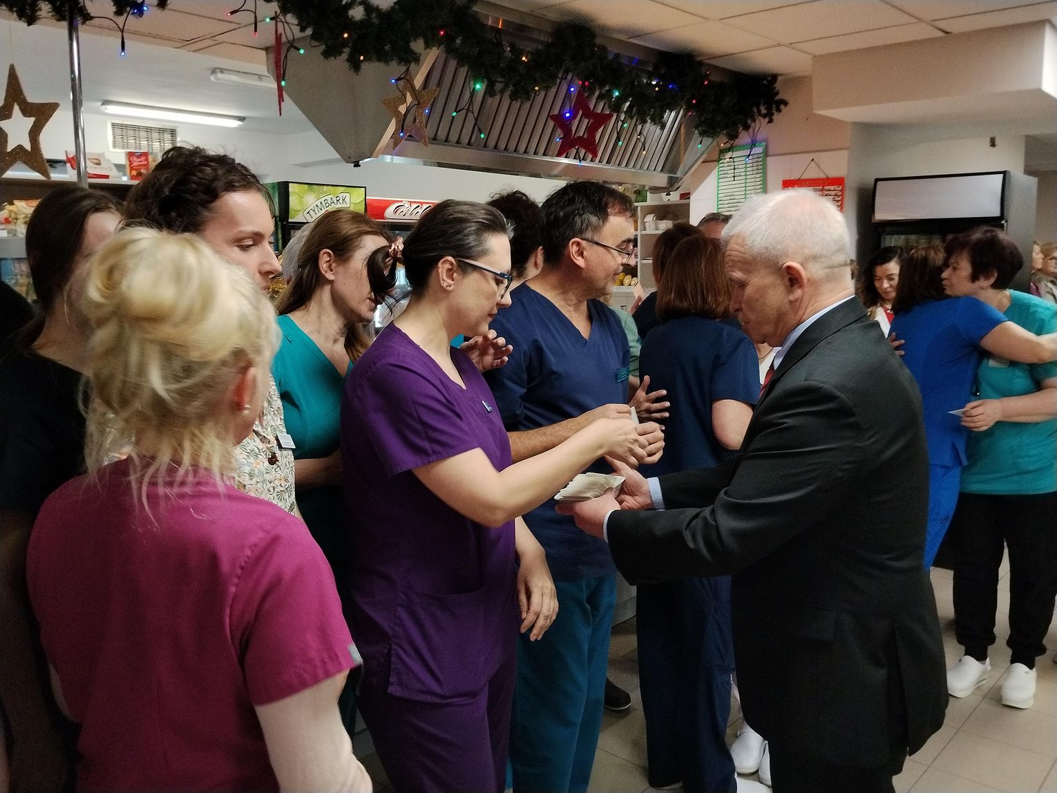 Zwieńczeniem uroczystości było tradycyjne dzielenie się opłatkiem. Zgromadzeni pracownicy i goście złożyli sobie świąteczne życzenia, a opłatek wcześniej poświęcił biskup łomżyński Janusz Stepnowski. Spotkanie przebiegło w atmosferze życzliwości, wdzięczności i nadziei na kolejny, jeszcze lepszy rok dla całej społeczności szpitala.