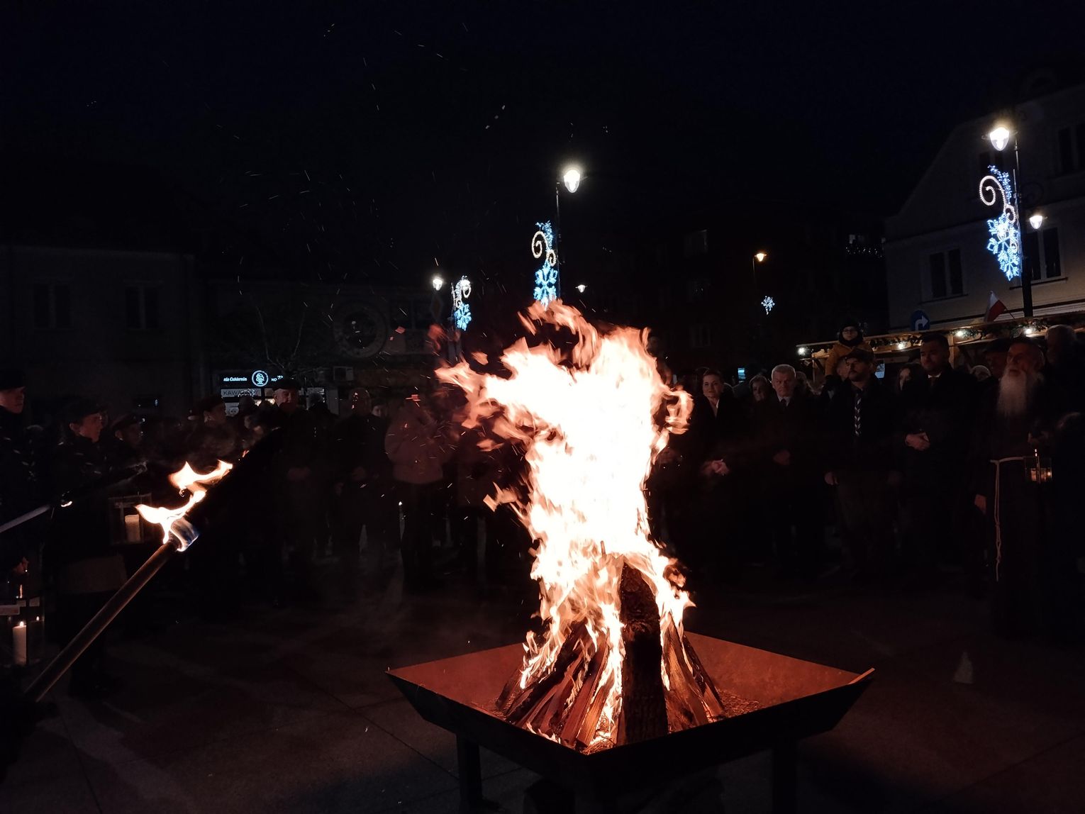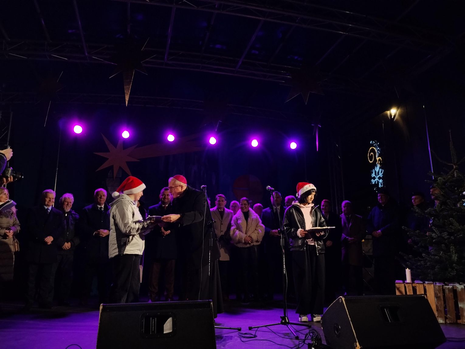 Jednym z najbardziej symbolicznych momentów wieczoru było przekazanie Betlejemskiego Światła Pokoju przez harcerzy. Płomień, który co roku wędruje z Groty Narodzenia Pańskiego, trafił do mieszkańców Łomży jako znak nadziei i jedności. Od tego światła biskup Janusz Stepnowski zapalił tradycyjne wigilijne ognisko, wokół którego zgromadzili się uczestnicy wydarzenia.