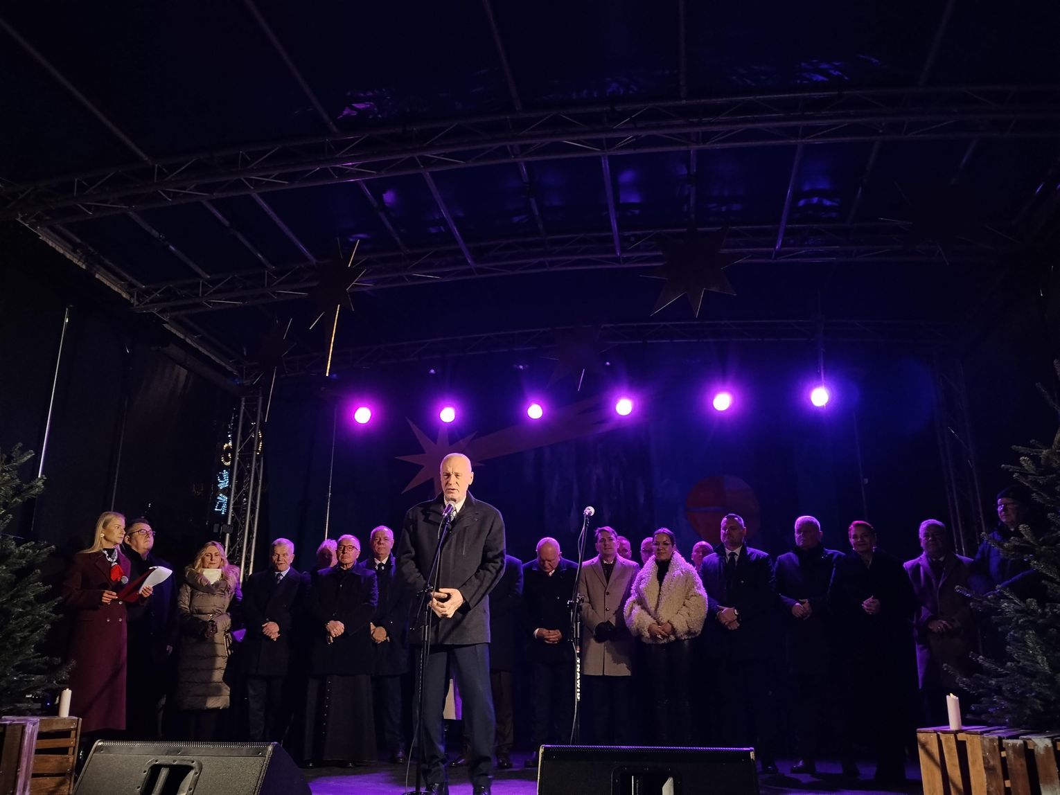 Ważnym punktem wieczoru było wystąpienie prezydenta Łomży Mariusza Chrzanowskiego, który podkreślił znaczenie miejskiej Wigilii jako wydarzenia budującego wspólnotę.