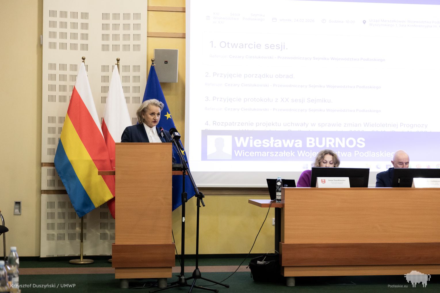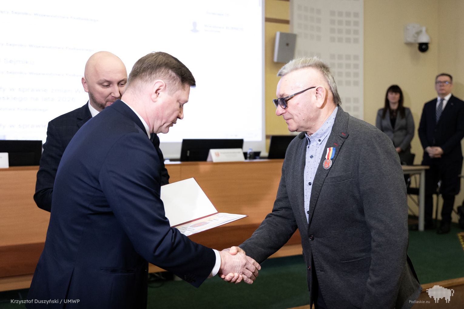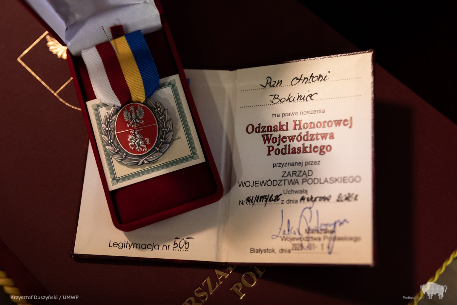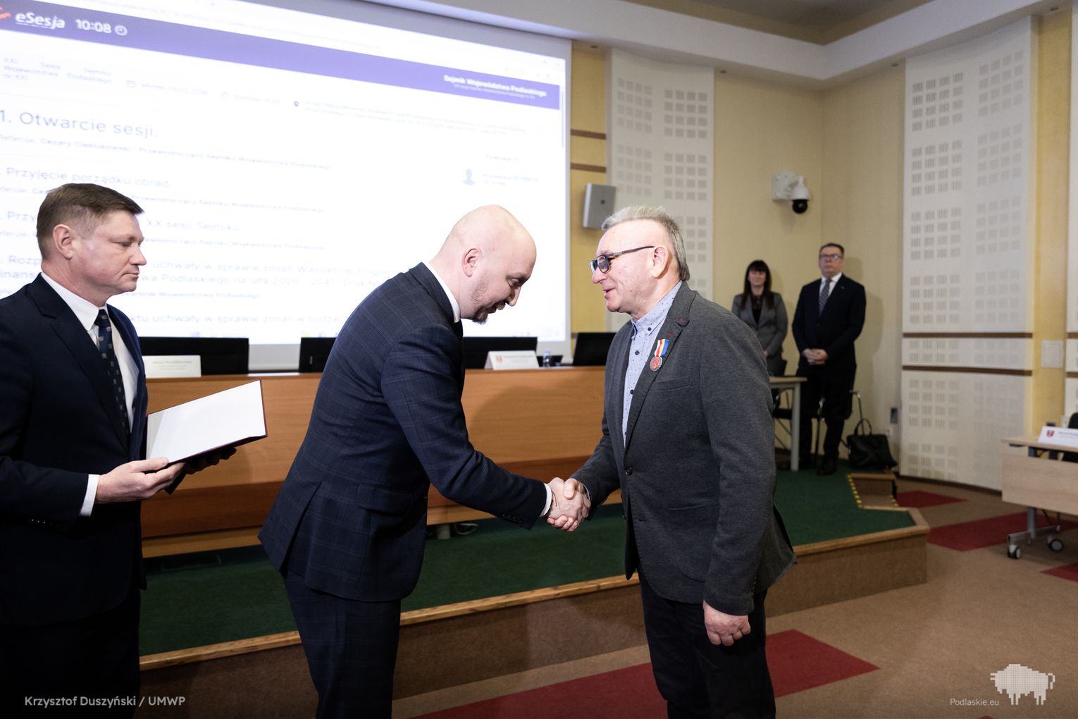 Obrady rozpoczęły się od uroczystego wręczenia Honorowej Odznaki Województwa Podlaskiego Antoniemu Bokińcowi z Łap – wieloletniemu dawcy krwi. Inicjatorem wyróżnienia był wicemarszałek Marek Malinowski.