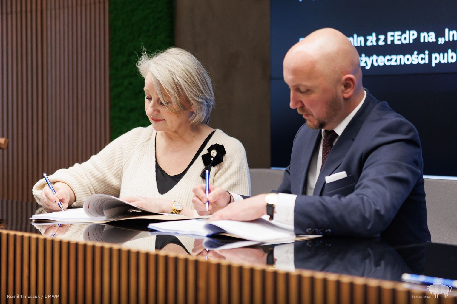 Prawie 32 mln zł unijnego wsparcia trafi do Suwałk na realizację dwóch dużych projektów proekologicznych. We wtorek, 3 lutego, marszałek Łukasz Prokorym oraz wicemarszałek Wiesława Burnos podpisali stosowne umowy z prezydentem miasta Czesławem Renkiewiczem, który pełni również funkcję prezesa Miejskiego Obszaru Funkcjonalnego. Łączna wartość inwestycji sięga blisko 49 mln zł.