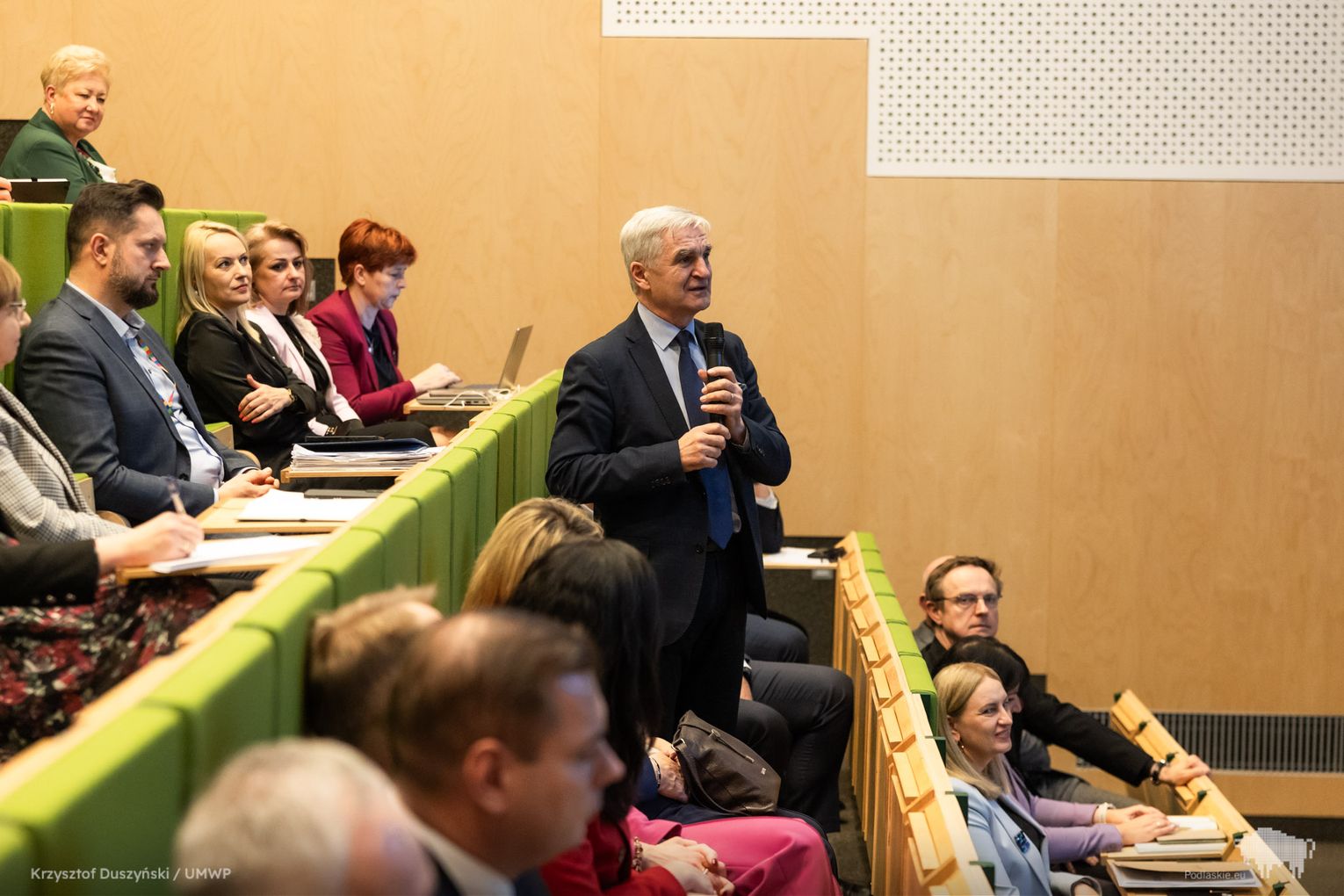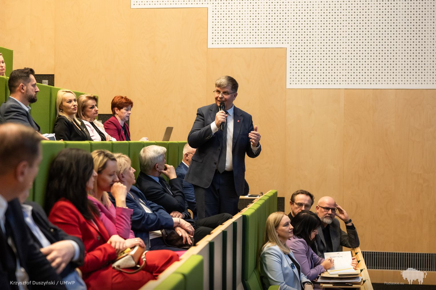 Spotkanie odbyło się w Auli Wydziału Matematyki Uniwersytetu w Białymstoku i zgromadziło naukowców, samorządowców, przedstawicieli instytucji publicznych, a także: marszałka Łukasza Prokoryma, wicemarszałek Wiesławę Burnos, członków zarządu: Bogdana Dyjuka i Jacka Piorunka, przewodniczącego sejmikowej komisji Rolnictwa, Obszarów Wiejskich i Ochrony Środowiska Jerzego Leszczyńskiego oraz sekretarz województwa Monikę Kondratowicz.