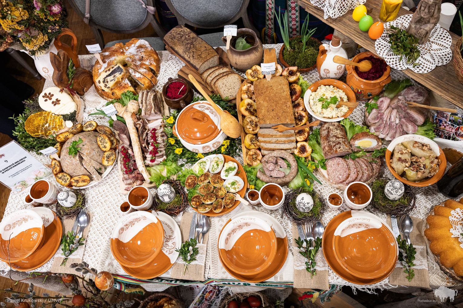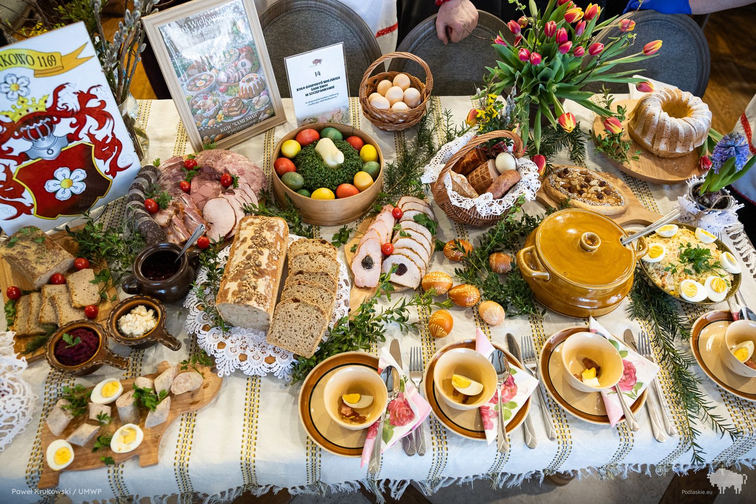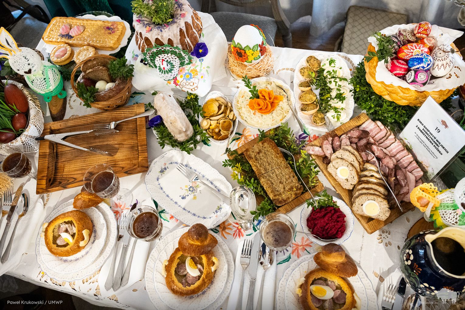 Celem obu konkursów była aktywizacja społeczności zamieszkującej obszary wiejskie. W tym na tradycyjny wielkanocny stół uczestniczyły 22 koła gospodyń wiejskich z regionu. Co zaprezentowały? Mazurki, serniki, babki i baby, jaja w sosie tatarskim i faszerowane, galaretki drobiowe i te na słodko, swojskie wędliny, kiełbasy i pasztety, do tego chrzan i majonez własnej roboty…