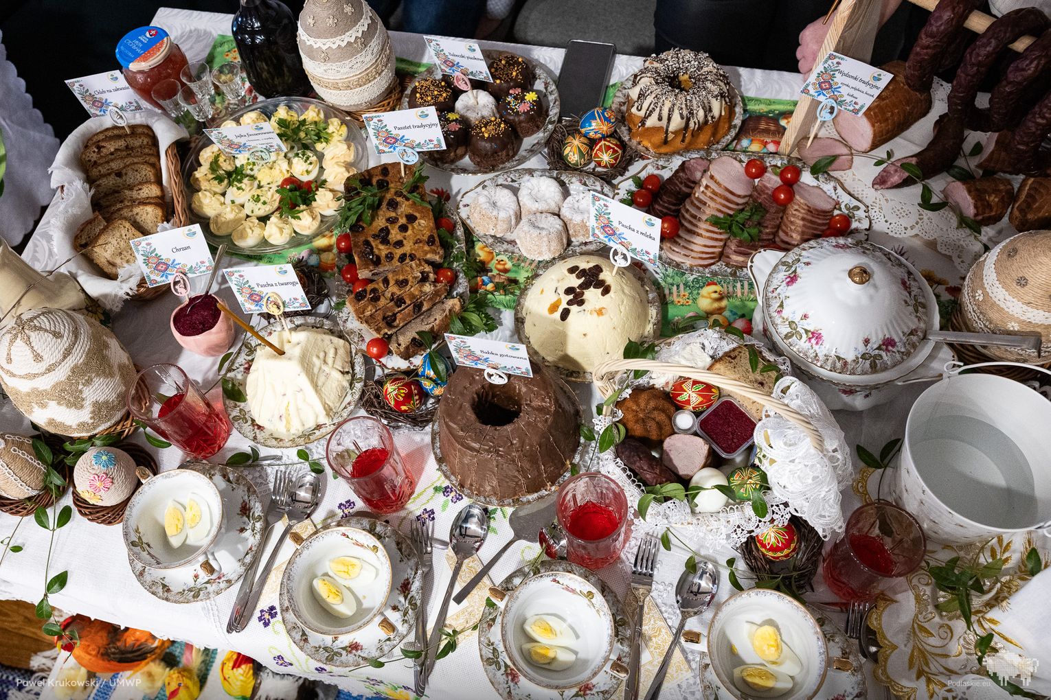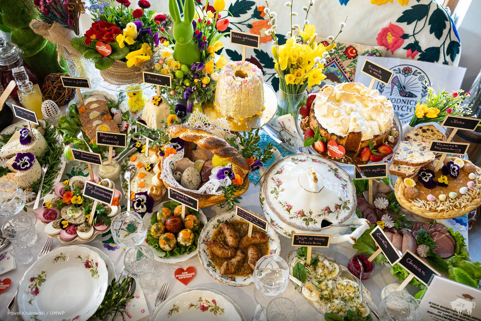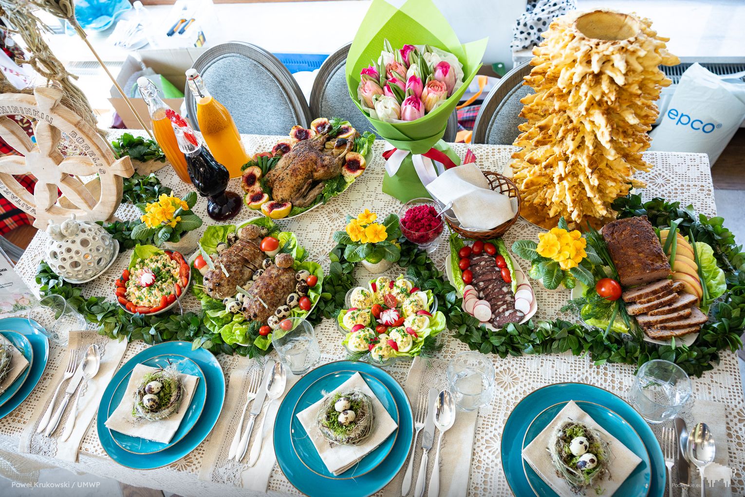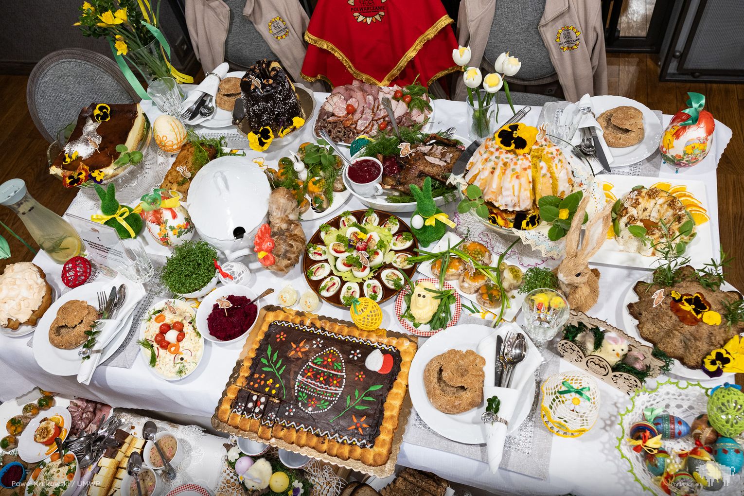 Celem obu konkursów była aktywizacja społeczności zamieszkującej obszary wiejskie. W tym na tradycyjny wielkanocny stół uczestniczyły 22 koła gospodyń wiejskich z regionu. Co zaprezentowały? Mazurki, serniki, babki i baby, jaja w sosie tatarskim i faszerowane, galaretki drobiowe i te na słodko, swojskie wędliny, kiełbasy i pasztety, do tego chrzan i majonez własnej roboty…