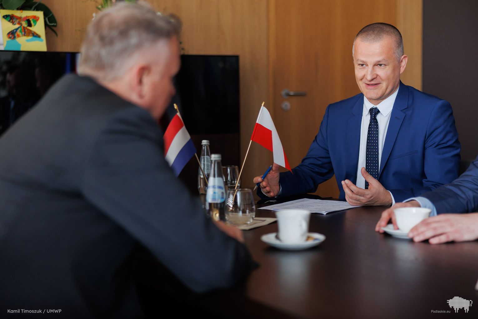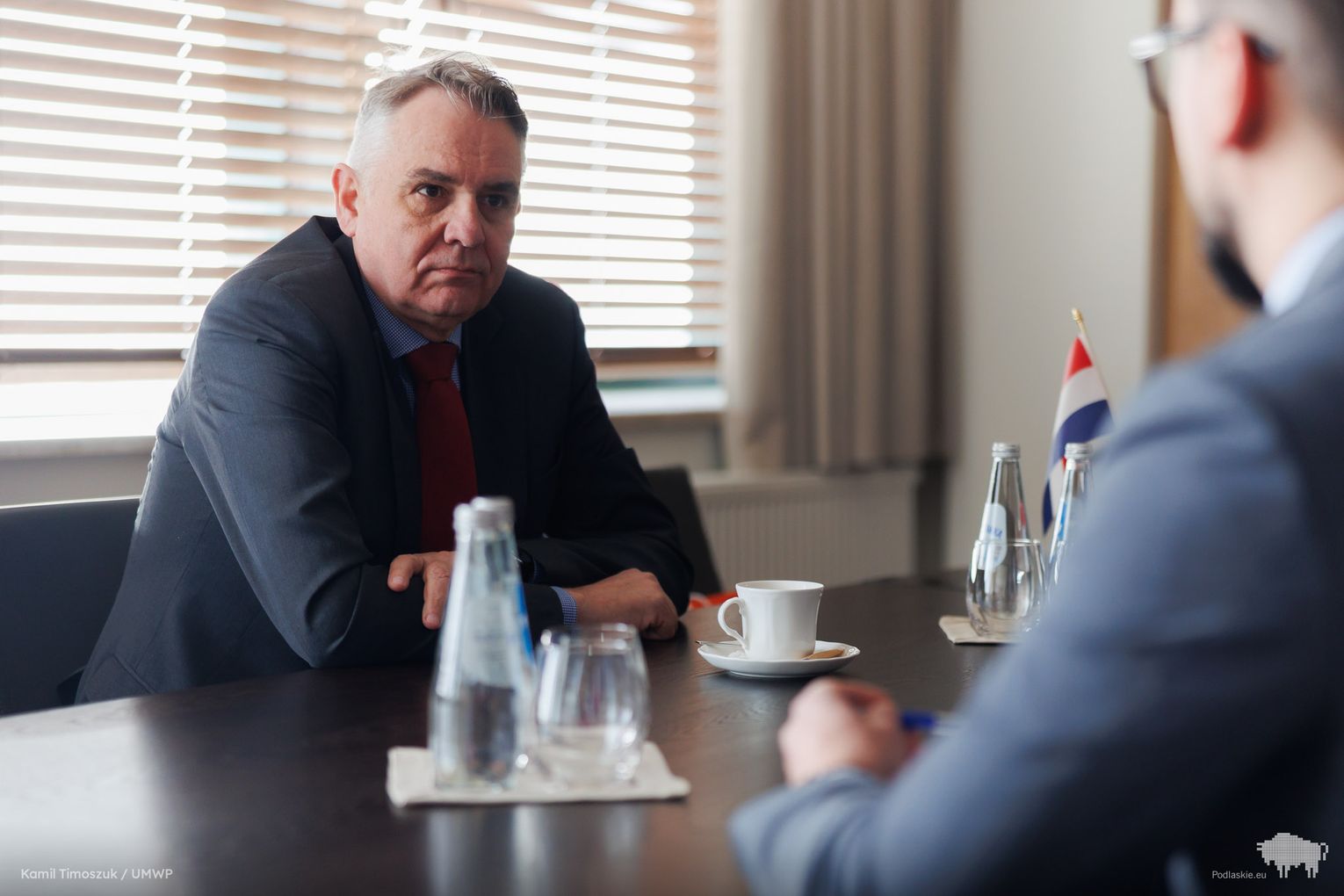 Dyplomata odniósł się również do sytuacji geopolitycznej regionu, wyrażając zrozumienie dla wyzwań, przed którymi stoi województwo podlaskie jako obszar przygraniczny. Zadeklarował wsparcie dla wartości demokratycznych i wolnościowych oraz przypomniał o zaangażowaniu Niderlandów w działania NATO na wschodniej flance sojuszu, w tym obecności żołnierzy i udziału w ćwiczeniach wojskowych w Polsce. Zaznaczył także, że zna Białystok dzięki współpracy z Eindhoven, z którego pochodzi. Warto wspomnieć, że kontakty między miastami rozwijane są od lat 90. m.in. w ramach Stowarzyszenia Kontakt Miast Białystok – Eindhoven.