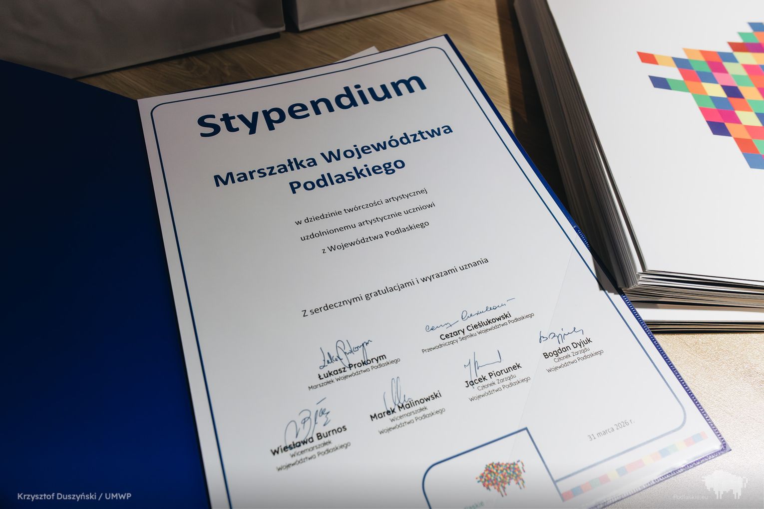 –Cieszę się, że Łomża jest wśród stabilnych filarów kultury naszego województwa. Już wkrótce to nasi stypendyści będą decydować o kulturalnym obliczu nie tylko regionu, ale też kraju. Serdecznie gratuluję i dziękuję za trud godzenia nauki z działalnością artystyczną. Mam nadzieję, że stypendia realnie pomogą w dalszym rozwoju twórczym – powiedział Jacek Piorunek.