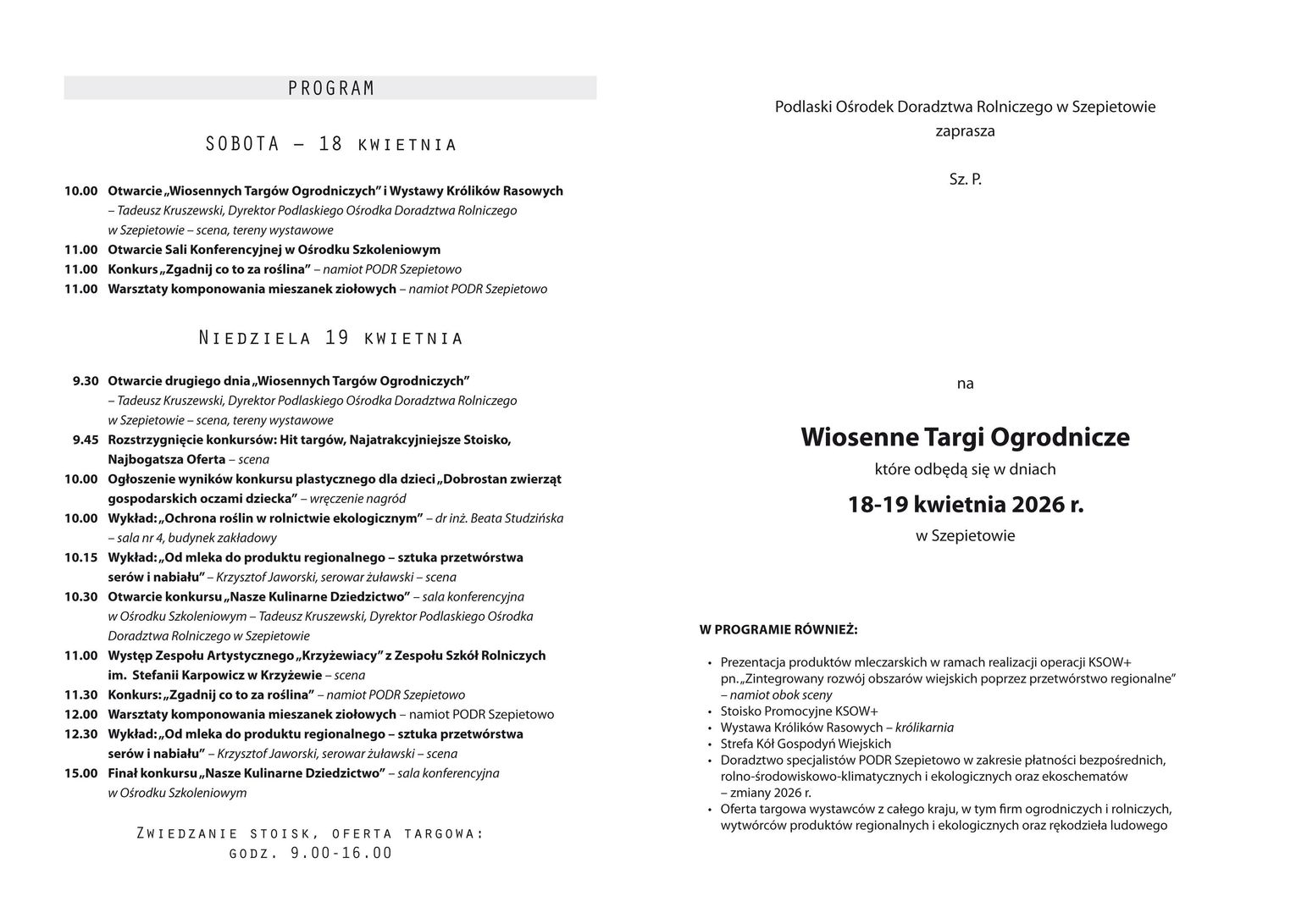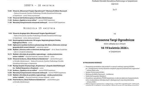 Zapraszamy wszystkich miłośników ogrodów, działkowców, rolników oraz rodziny do wspólnego spędzenia tego wiosennego weekendu w Szepietowie.