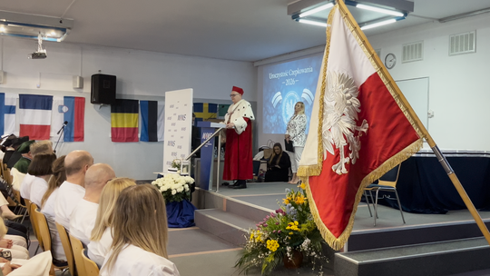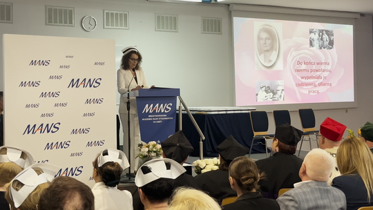 Podkreśliła również, że współpraca uczelni ze szpitalem – m.in. poprzez praktyki – pozwala przygotować studentów do realnych wyzwań zawodowych. Absolwentom życzyła przede wszystkim wytrwałości i nieustającego rozwoju.