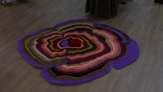 Wybór techniki nie jest przypadkowy. Dywan, jako przedmiot użytkowy, bliski ciału i obecny w codzienności, staje się idealnym medium do opowiadania o doświadczeniach cielesnych i emocjonalnych.